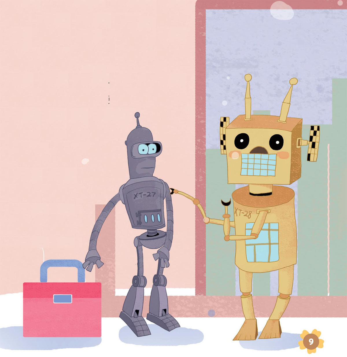 克罗迪不是一般的机器人,他的识别牌上写着“XT-27,最好、最现代的机器人”。事实上,他是最新款的机器人,是世界上模拟人类行为和思想最好的机械。当然,这让他感到非常自豪。这种自豪感也让他生出了优越感,以至于当他走在街上看到其他机器人时,他会面露轻视的神情,只对其他XT-27 机器人热情地打招呼。 “所有机器人都应该像我们XT-27一样。”他在心里想。他确信,没有比XT-27型号更好的机器人了,如