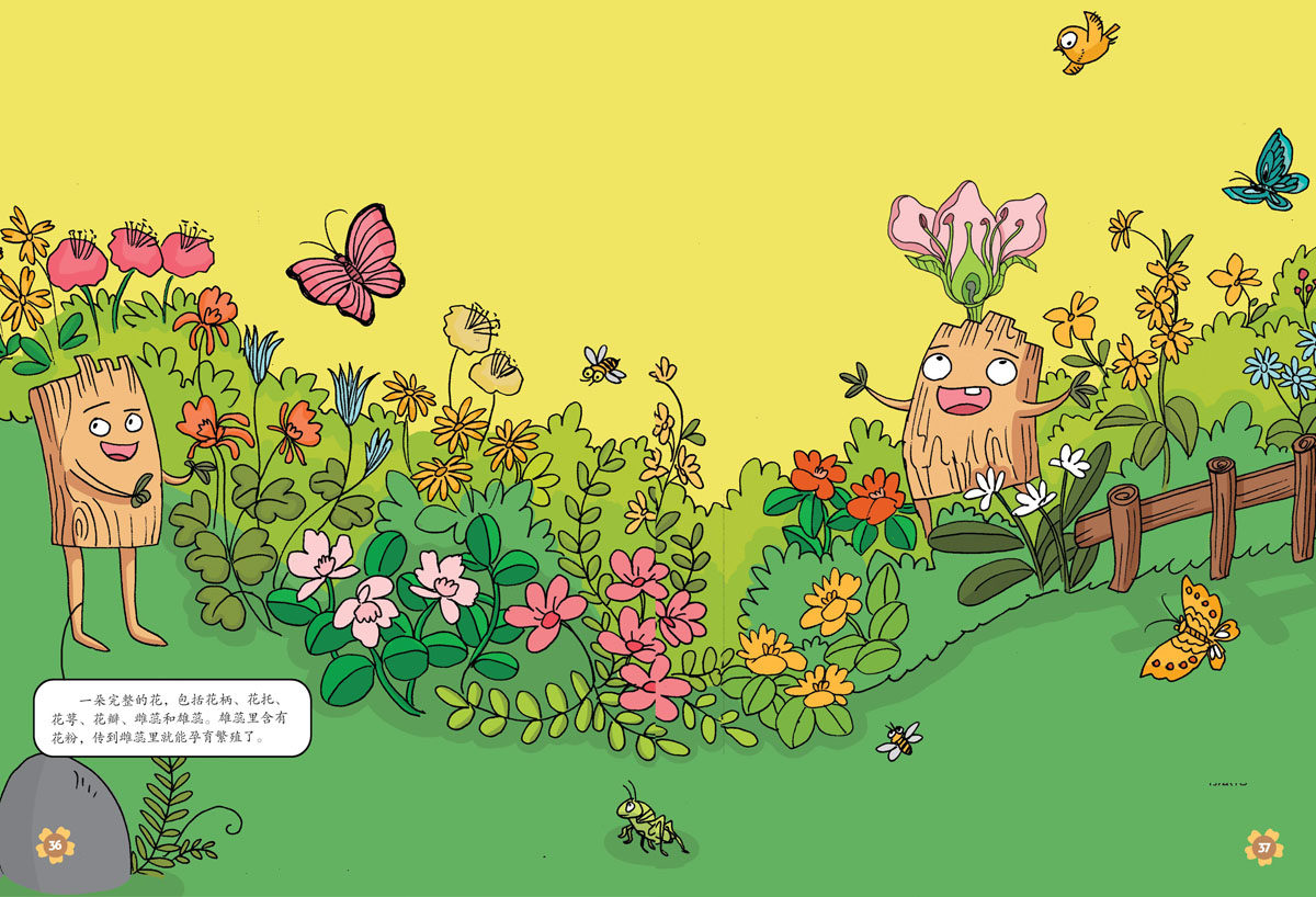 像动物一样,植物也需要繁殖后代,也有生殖器官。花,就是植物的生殖器官。开花植物孕育下一代,都是从花开始的。 一朵完整的花,包括花柄、花托、花萼、花瓣、雌蕊和雄蕊。雄蕊里含有花粉,传到雌蕊里就能孕育繁殖了。 很多花的花粉要和雌蕊相见,需要通过其他媒介才行,就好比男女结婚需要媒人来介绍一样。风、水、鸟、昆虫都是花的媒人。很多花又美又香,就是为了吸引鸟儿和昆虫,把花粉沾在它们身上,让它们带到雌蕊上。