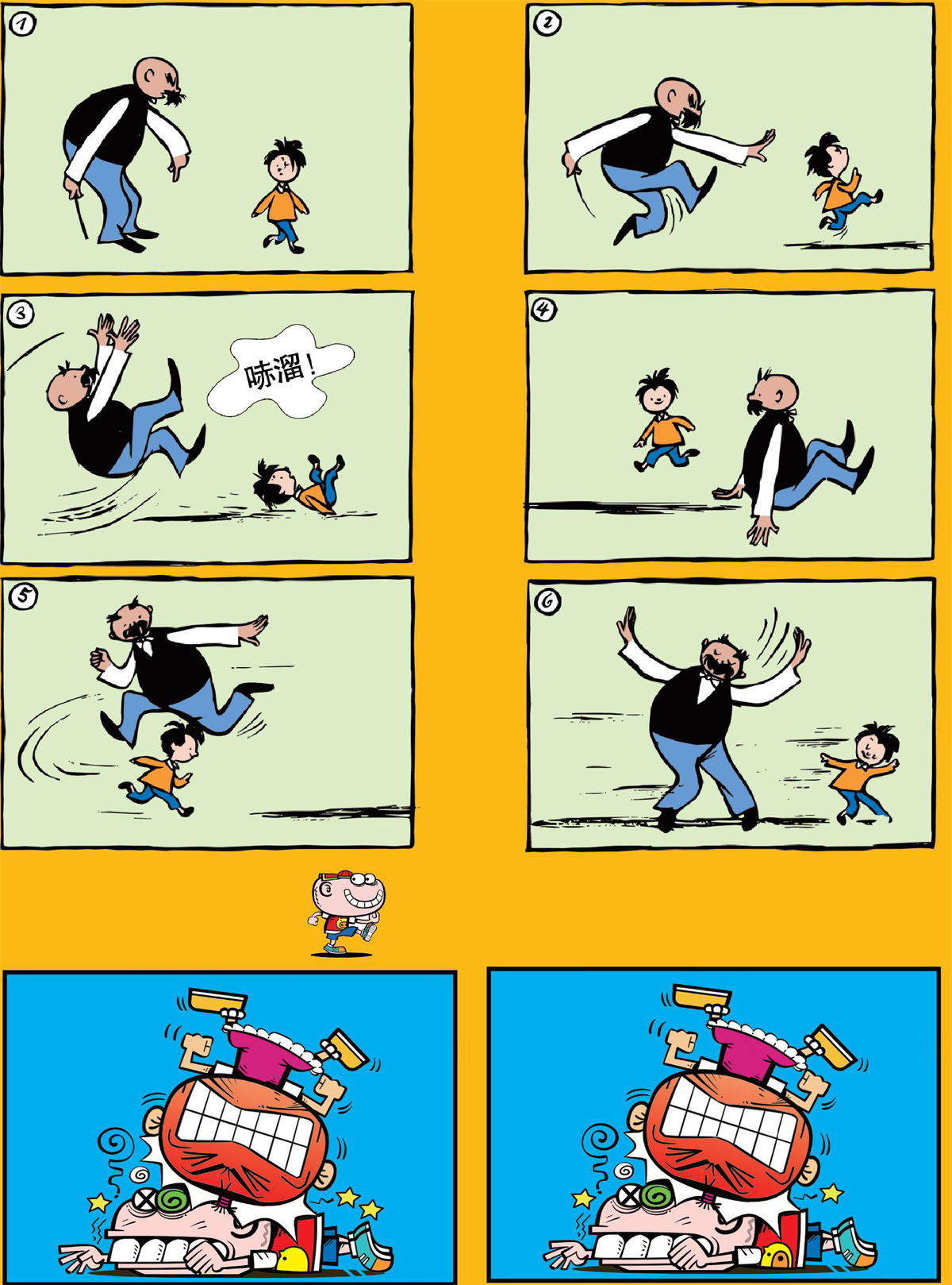 《父与子》:意外的收获 豌豆找不同 豌豆找不同下面两图共有6 处不同,快来找找看! 最佳礼物 两个孩子在院子里玩。 一个孩子问道:“儿童节你得到了什么?” “世界上最漂亮的礼物——一个军鼓。” 伙伴笑着回答。 “哼!一个军鼓,这不是什么好礼物。” “当然是的,简直棒极了!自从儿童节以来,我天天敲鼓,妈妈觉得太吵了,给了我100 元,让我不要再敲它!” 稍等一分钟 飞机上,空姐正