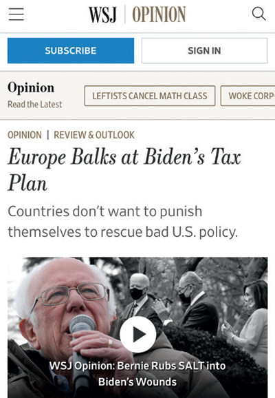 《 华尔街日报》5 月19日 近期,拜登提出“全球最低企业税率”计划,想对美国企业在境外赚取的利润另外征收最低税,法定税率为21%,但许多公司面临的实际税率更高。 此前,美国财政部公布增税措施,将美国企业税税率由21%上调至28%,并将企业海外利润的最低税率从10.5%提高至21%。白宫预计,增税计划将使联邦政府在未来15年增加约2万亿美元收入,抵消政府基建计划的成本。 拜登政府希望,制定全