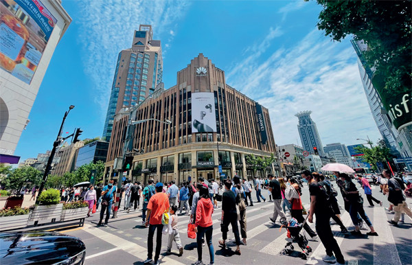 5月22日,华为位于上海南京东路上的旗舰店外景。 最近,“不造车”的华为却屡屡登上汽车新闻的头条。 4月17日,北汽新能源与华为联合打造的极狐阿尔法S华为HI版面世,这是第一款“HUAWEI Inside”汽车。 4月19日,小康股份与华为联合打造的赛力斯SF5华为智选版正式亮相上海车展。 4月20日,华为消费者BG CEO余承东现身上海华为全球旗舰店,宣布华为正式开启卖车,并将在年底前拓