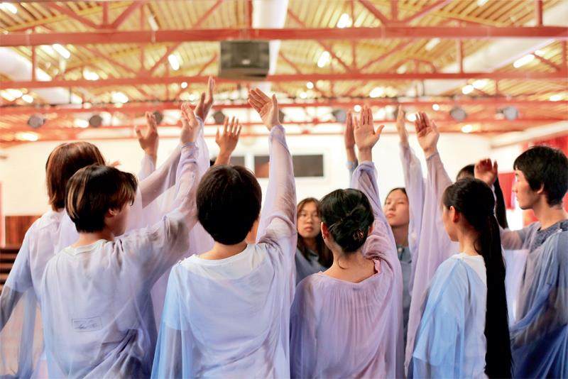 十二年级毕业音语舞展示。音语舞没有华丽、复杂、高超的外在技巧,吸引人的就是当你深深地和自己在一起时那种完全打开,被音乐和诗歌浸润的状态。 在北京的六环外,有一群00后年轻人,即将高中毕业。那里的毕业季没有高考和刷题,高中生们准备的毕业项目是演讲和戏剧。 他们有的申请了国外的大学,有的准备利用间隔年先去做一年的志愿者,也有的还没有想好要不要上大学。 这是国内第一届完成12年新教育的毕业生,高考