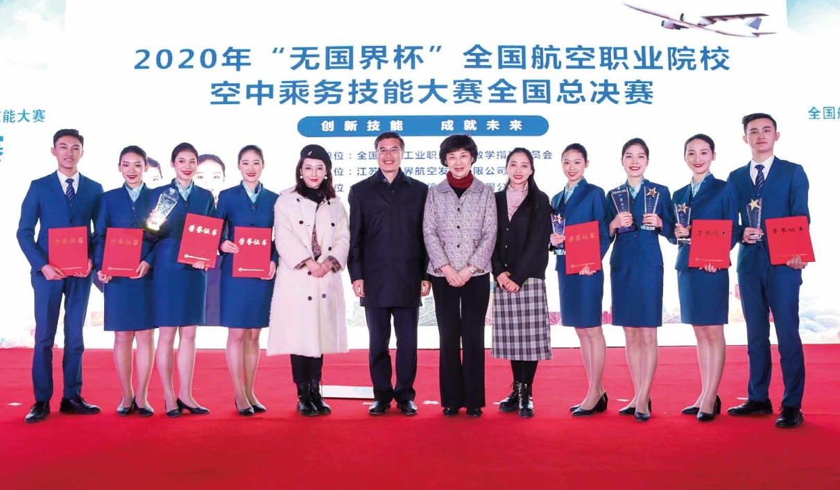 2020年“无国界杯”全国航空职业院校空中乘务技能大赛全国总决赛于12月17日、18日在江苏省镇江市航空教育小镇隆重举办。此次决赛由全国航空工业职业教育教学指导委员会主办,江苏无国界航空发展有限公司承办。全国共68所职业院校、118支队伍参赛,经过重庆、三亚、济宁和廊坊四站复赛的角逐,最终共有36支参赛队入围决赛。来自重庆航天职业技术学院空中乘务专业的2支队伍经过激烈竞争,在决赛中