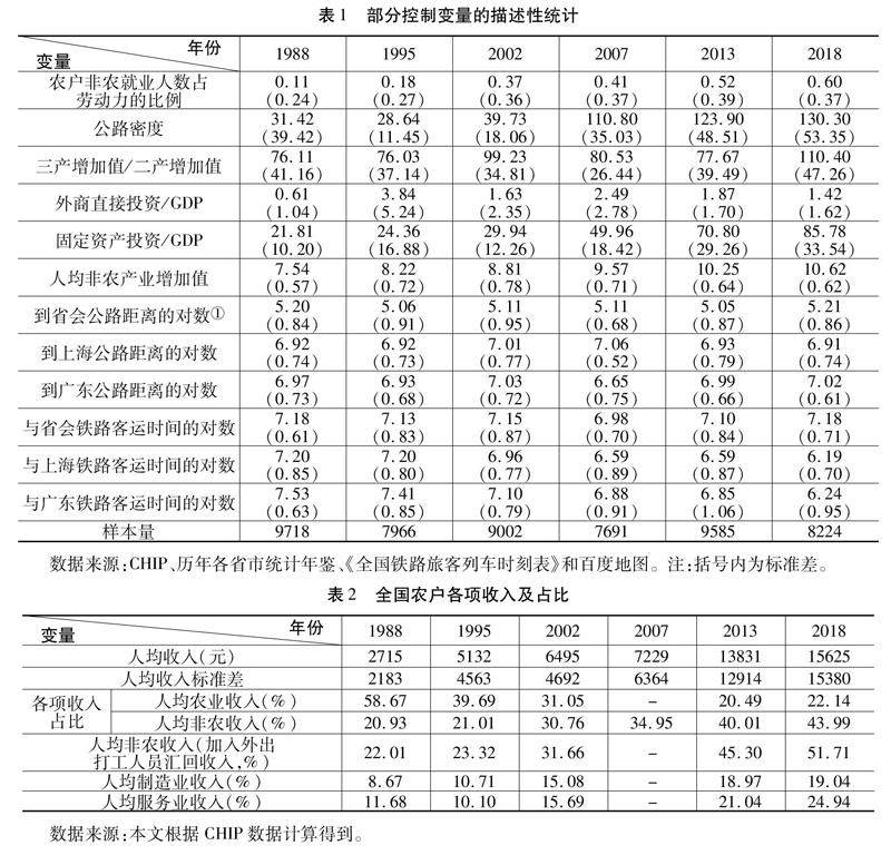 内容提要本文使用跨度30年(1988—2018)的CHIP农村抽样入户调查数据考察了改革开放以来制造业中心对农村居民收入的区域辐射影响,并在半参数回归模型中使用农户所在地到制造业中心距离变量分析了制造业中心对农户收入的辐射作用及其空间衰减状况。研究结果表明,我国各地区的农户收入水平与当地的工业发展水平密切相关,一个地区的制造业、服务业、外资、出口水平越高,该地区的农村居民收入越高,特别是低收入家庭获益最大。2010年以来,珠三角和长三角国际制造业中心的劳动密集型产业不断向中西部省份转移,已经使各省制造业中心促进农村居民收入提高的作用越来越大,越来越多的外出农民工选择在本省就业。