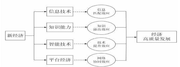 随着新一轮科技革命和产业变革的加速推进,发展新经济已经成为加快形成中国经济高质量发展新动能的迫切需要。本文首次采用“纵横向拉开档次法—BP神经网络分析法”测算了中国新经济的发展水平,并从信息技术、知识能力、智能技术与平台经济四个层面考察了新经济对经济高质量发展的影响机制及其作用效应。研究发现:2009—2018年中国的新经济发展水平呈现波动上升的趋势,且地区间差异相对较大。新经济对经济高质量发展具有显著的促进作用,并且这种正向效应在经济发展质量较高地区表现得尤为突出。同时指出,新经济推动经济高质量发展的作用主要体现在信息技术的信息匹配效应、知识能力的知识溢出效应、智能技术的技术提升效应以及平台经济的网络协同效应。新经济对经济高质量发展的影响存在一定的地区差异,且区域发展水平与投资程度均正向调节了新经济与经济高质量发展之间的关系。最后,本文指出我国应通过加快完善数字化、智能化基础设施水平等举措加速发展新经济,助力经济高质量发展。