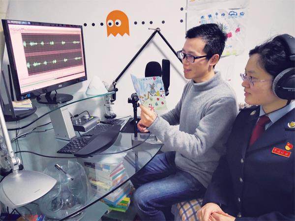 高山夫妻俩在录音 她做微信公众号,他来讲故事,孩子们的心被故事融化了,而夫妻俩的心也被孩子们暖到了。 用故事拉近亲子关系 高山和爱人汤皓澜是江西财经大学的同班同学,毕业后,他考入家乡江苏省南通市如东县人民法院,汤皓澜考入如东县地税局。2010年,两人步入婚姻殿堂。 2012年9月,大女儿兜兜出生。高山沉浸在初为人父的喜悦中,看着粉嘟嘟的小人一天比一天漂亮可爱,很想抱抱女儿。可女儿却总是闹着