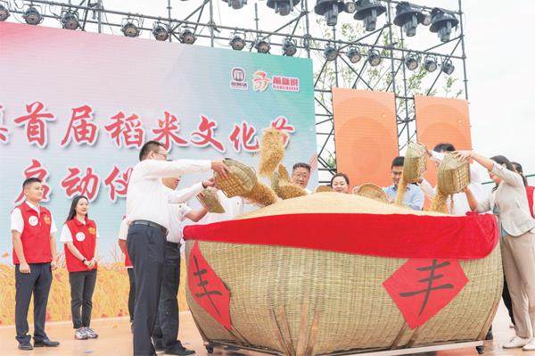 前黄镇首届稻米文化节启动现场 金秋十月,稻谷飘香。10月11日,常州市武进区前黄镇首届稻米文化节在联庆村拉开帷幕。水果、蔬菜、粮食组成的春夏秋冬图,艺术地展现了丰收的喜庆;专业人员为各种农产品销售做着现场直播……在前黄镇农业现代化发展步伐中,女性起着积极推动作用,为当地农业发展贡献着巾帼力量,如武进区第一位开插秧机的女农机手黄亚惠、江苏(武进)水稻研究所高级农艺师徐洁芬、常州市祝庄园艺有限公司总