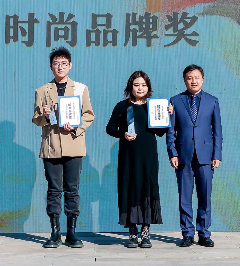 紫禁城品牌大奖:安踏北京时尚控股有限责任公司党委副书记、总经理 朴学东(右)为获奖品牌颁奖 紫禁城设计大奖:邹游北京市商务局党组成员、副局长 郭文杰(右)为获奖者颁奖 中国纺织工业联合会原副会长、2020中国非遗十大人物孙淮滨上台,为熊英授予“2023北京时装周非遗时尚大使”称号 3月18日,2022北京时装周颁奖盛典暨非遗尚新SHOW熊英·盖娅传说|“天外”2023AW品牌发布会在北京