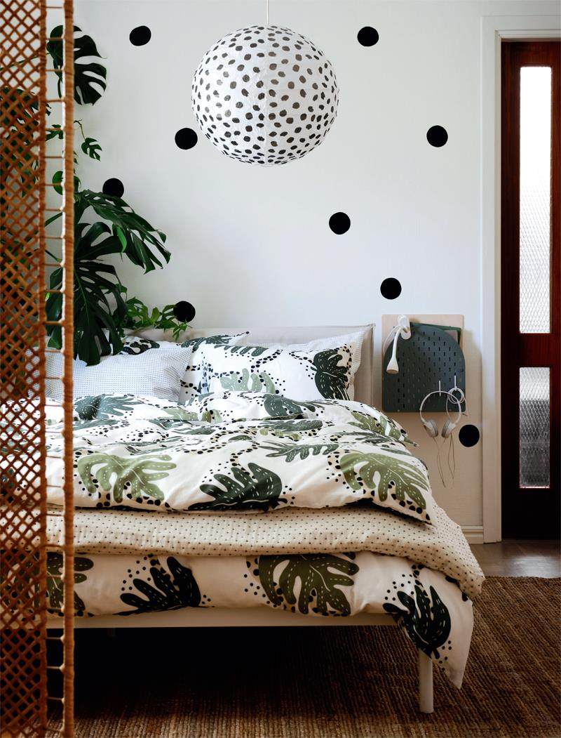 宜家 克莱特卡拉被套 春日风雅 身在都市的我们,既羡慕远方的诗与阳春白雪,又离不开日常安适的烟火气,如何将理想照进现实,找到两者的平衡点?不妨从自然中汲取灵感,将外部世界的绿意和清新气质引入室内,通过天然与人工装饰的无缝衔接,让家中充满自然的生命能量。 TIPS 一些不俗气、高颜值的绿植放在家中,如油画吊兰、马醉木、龟背竹、龙血树、琴叶榕……瞬间增添生气,让家鲜活起来。 柔和力量