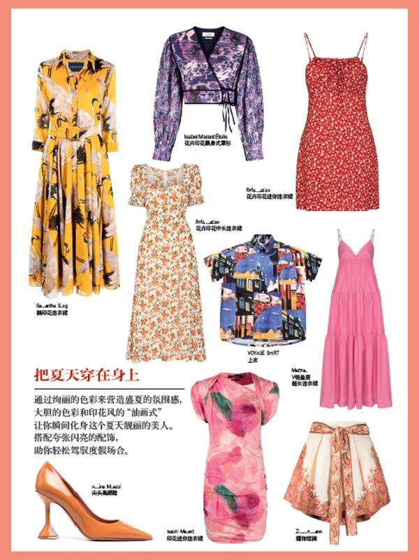 把夏天穿在身上 通过绚丽的色彩来营造盛夏的氛围感,大胆的色彩和印花风的“油画式”让你瞬间化身这个夏天靓丽的美人。 搭配夸张闪亮的配饰,助你轻松驾驭度假场合。 巧取设计感 不想在衣服上大做文章, 又希望整体穿搭体现设计感。 解锁配饰穿搭, 让你在这个夏季可飒可甜, 浪漫甜蜜中也可带有酷酷气场。 干净利落引力场 简单就是美。 想要时刻保持优雅气质更是不能少了高级质感,