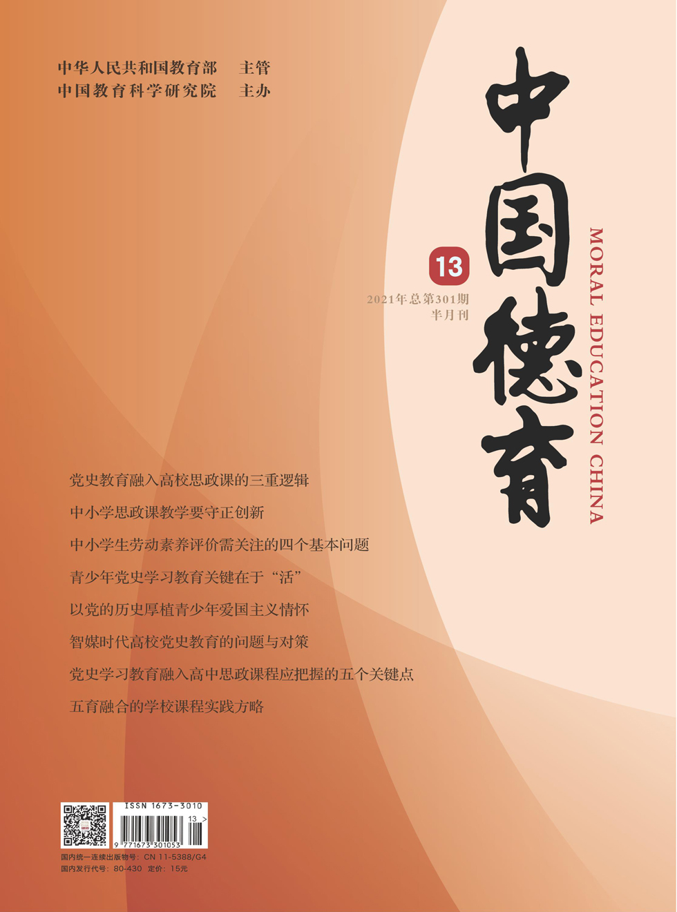 在加快推进教育现代化、建设教育强国、办好人民满意教育的新征程中,党中央就教育改革发展提出一系列新理念新思想新观点,为我们新时代教育事业发展指明了方向。把握好中央的教育精神、落实好国家的教育政策,是推进教育进一步改革发展的关键。《中国德育》特开设专栏,解读教育的“顶层设计”,探讨教育的“奋进之笔”,以期为教育改革发展助力。 摘 要 党史教育融入高校思政课蕴涵着三重逻辑:在理论维度,要懂得党史教育