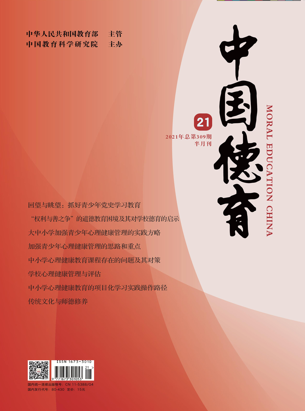 2021年7月,教育部办公厅发布《关于加强学生心理健康管理工作的通知》,要求进一步提高学生心理健康工作针对性和有效性,切实加强专业支撑和科学管理,着力提升学生心理健康素养。青少年既是家庭的希望,更是国家的未来。做好青少年心理健康管理工作是全社会的共同责任,更是教育工作的首要之责。本期话题聚焦“加强青少年心理健康管理”,结合时代属性,探讨青少年心理健康管理的总体方略、课程建设、管理评估等内容。 摘