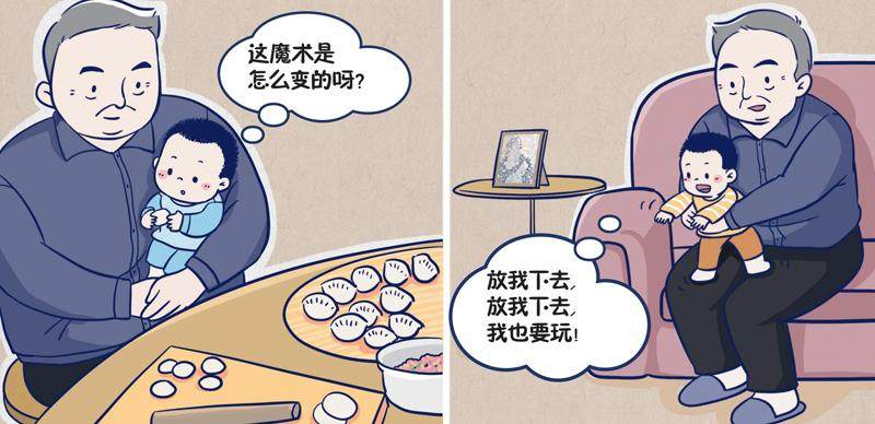 好奇心是婴幼儿探索世界极为重要的动力,是一种积极主动而敏锐执着的学习方式,是非常珍贵的品质。 婴儿的好奇心很重,有时候探究起来挺疯狂。我的小外孙虽还是小小婴儿,却一刻不闲,手里需要有玩的东西,经常连我的手也成了他的玩具。他还什么都想咬一咬,尝尝味道,用嘴探知世界。他喜欢往地上丢东西,抓住什么丢什么,连我的药盒也丢,就为了听个响儿,你刚刚帮他捡起来,他又丢下去,反反复复地丢个没完。 看包饺子、装