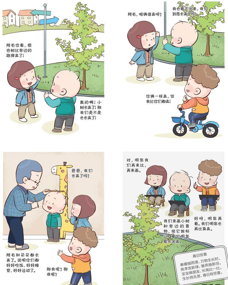 阿毛你看,银杏树比旁边的路牌高了!