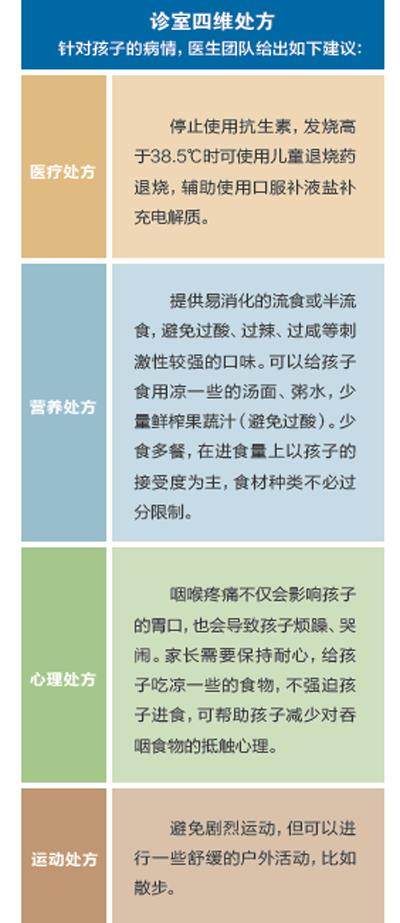 疱疹性咽峡炎的感染性比较强,通常夏秋季呈流行趋势,1~7岁的孩子更容易受到侵袭,而且有可能重复多次感染。做好预防,可以让孩子少感染。正确护理,可以减轻孩子患病之后的痛苦。 【诊室镜头回放】 4岁的孩子因咽喉痛、发烧到诊室就诊。家长告诉医生,两天前孩子开始感觉不舒服,当天晚上嗓子疼、发烧。第二天晚上孩子的食欲明显下降,不怎么愿意吃东西,只喝了些凉牛奶。家长认为是扁桃体发炎,给孩子吃了抗生素,但没