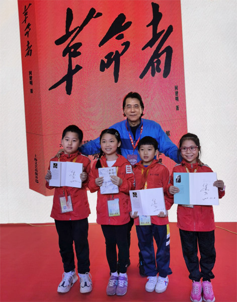 何建明讲党课后与少年学生合影。 从北京到南京,今天只为一件事:为准备了10年的活儿画个句号。 4月20日清晨,中国作家协会副主席何建明在微信朋友圈发了这样一句话。当天,由他创作的纪实文学《雨花台》,在南京举行首发式。 前一天,他在北京给两家单位上了两堂党史课,这是最近一个多月来何建明的工作常态。 课堂上,他从细节入手,将尘封多年的历史一一呈现了出来。他的讲述,视角独特,人物可触摸,被誉为立