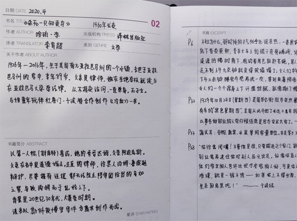王婉宁的读书笔记 90后的王婉宁是一名药剂师。药剂师的生活忙碌而单一,但王婉宁喜欢阅读,每天都会挤出时间坚持阅读。 除了读一些专业书籍,王婉宁业余时间更喜欢读文学类书籍,总是觉得自己读的书太少。每天下班后的阅读时间,成了她生活中最期待的幸福时刻。“翻开书本的那一刻,我不再是我,我就是书里的主人公。” “从平时的阅读中,我获得的最大感受是心灵的冲击、思想的洗礼、灵魂的共鸣和性格的磨炼。”王婉宁