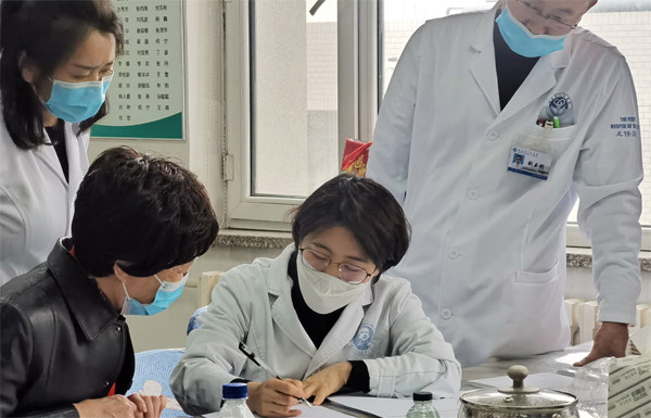 阜外心血管病医院原副院长惠汝太正向患者了解病情,当天他共接诊57人。图/王彪 4月10日,春满赤城,来自阜外心血管病医院、北京协和医院等北京三甲医院的8位专家,一大早来到河北省张家口市赤城县人民医院,为当地群众义诊。 8位专家来自心脑血管、风湿免疫、妇科、中医针灸、超声检查等不同学科,近230名赤城群众前来就诊。同时,专家通过带教、健康讲堂、临床培训等方式,帮助当地医护人员提升临床技术服务及疑