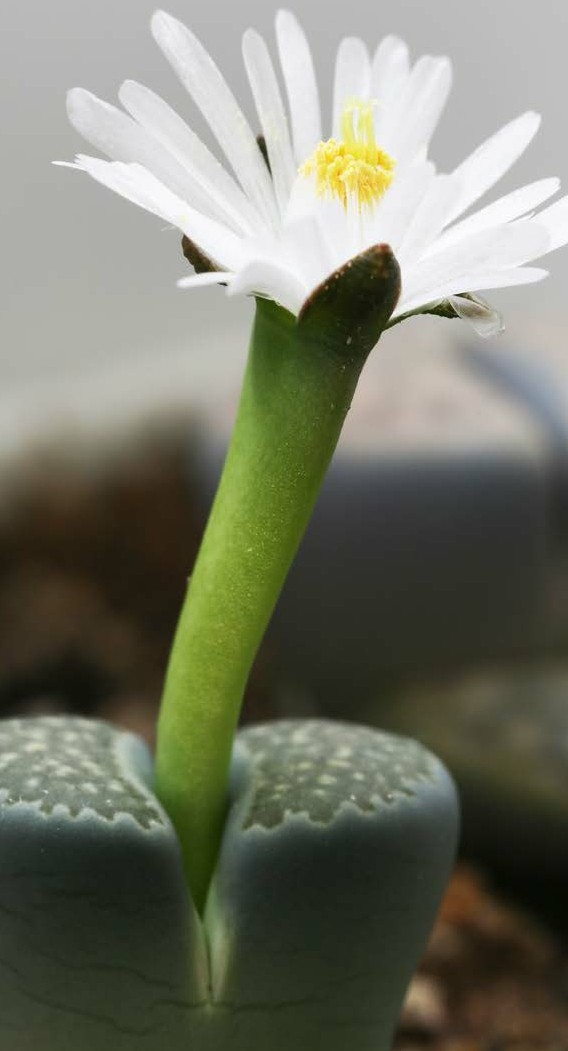 石头会开花吗?在非洲南部和西南部干旱而且砾石众多的荒漠里,有一种会开花的“小石头”。这些“小石头”颜色各异,有灰绿色、灰棕色等;它们的顶部有的圆滑,有的还有雨花石般的花纹。 这些“小石头”就是生石花。生石花别名石头花、曲玉、象蹄、元宝,番杏科生石花属,是多年生小型多肉植物。它的茎很短,不仔细观察很难发现;变态叶肉质肥厚,两片对生联结而成为倒圆锥体形状;它的顶部色彩和花纹各异,接近于卵圆形,稍
