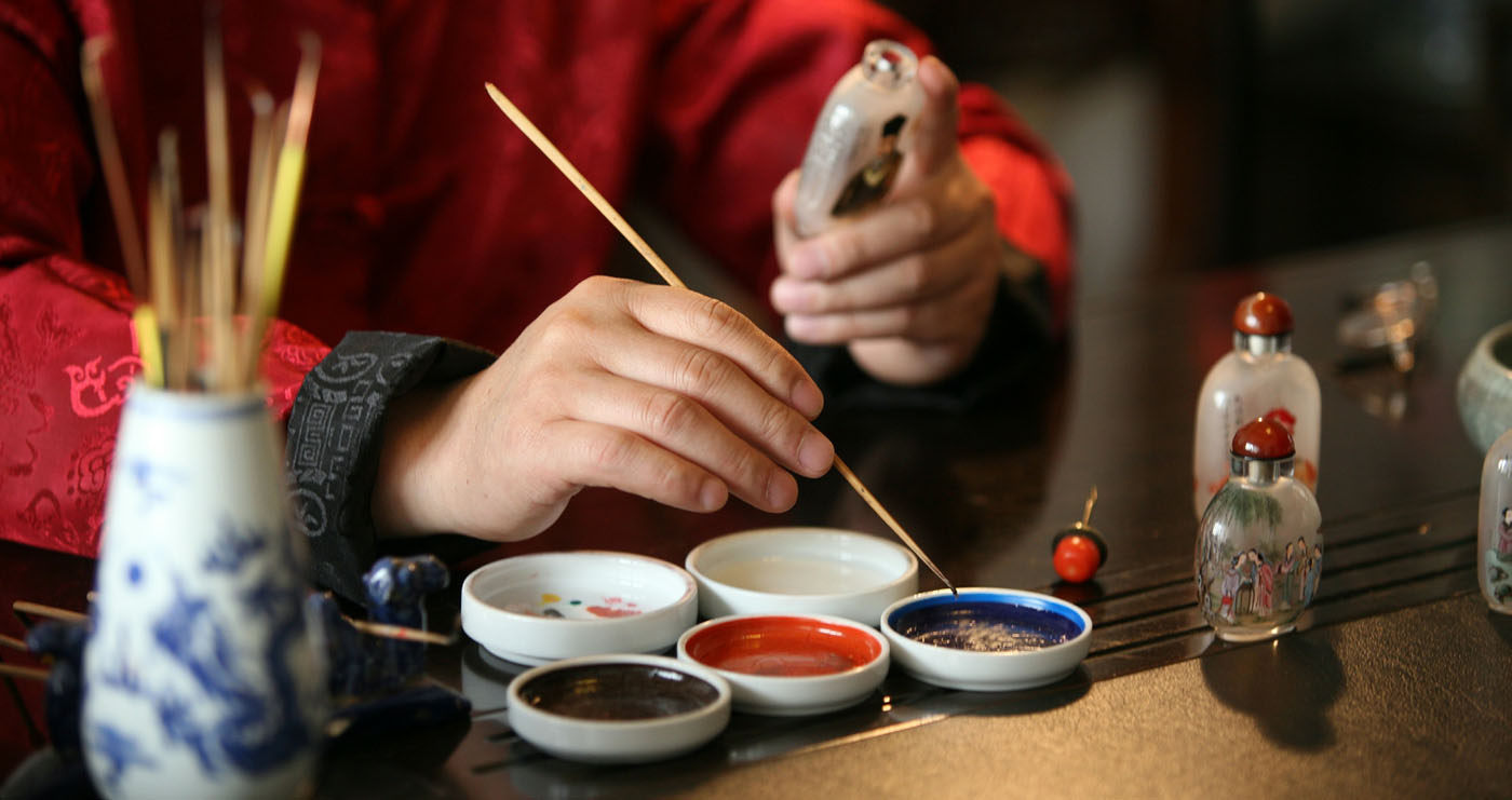 有的人一生只热衷于做一件事,王新年就是这样的人,对内画艺术孜孜以求30多年,仍初心不改、热爱不变。他最喜欢一个人坐在家中,静下心来慢慢琢磨技艺。一支自制的变形细笔,取墨用彩,在鼻烟壶中描绘着他心中的大千世界。 耳濡目染,把热爱的事业坚持到底 王新年出生于内画世家,耳濡目染,从小随父亲王卫生学习内画技艺。十几岁时,他专门跟随老师学习了两年素描,此后又学习了一年多国画。那时,各家条