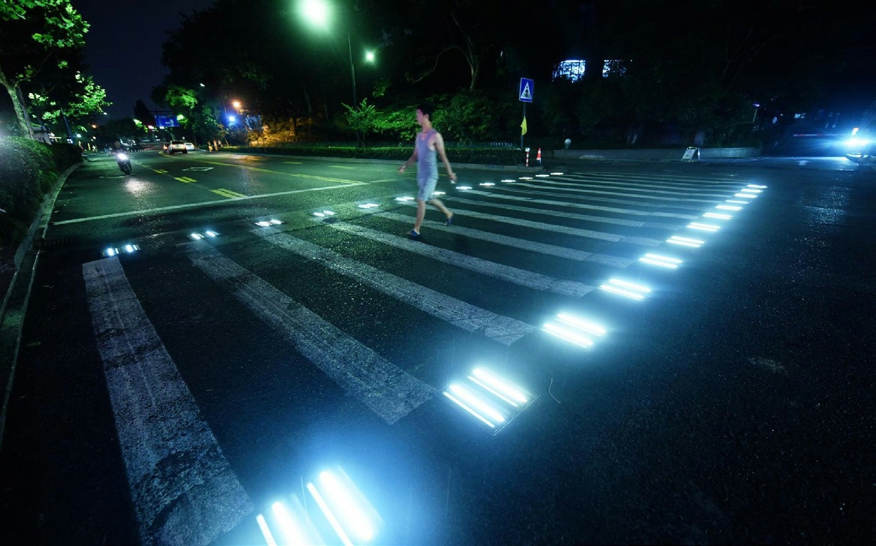 点亮“智能发光斑马线”