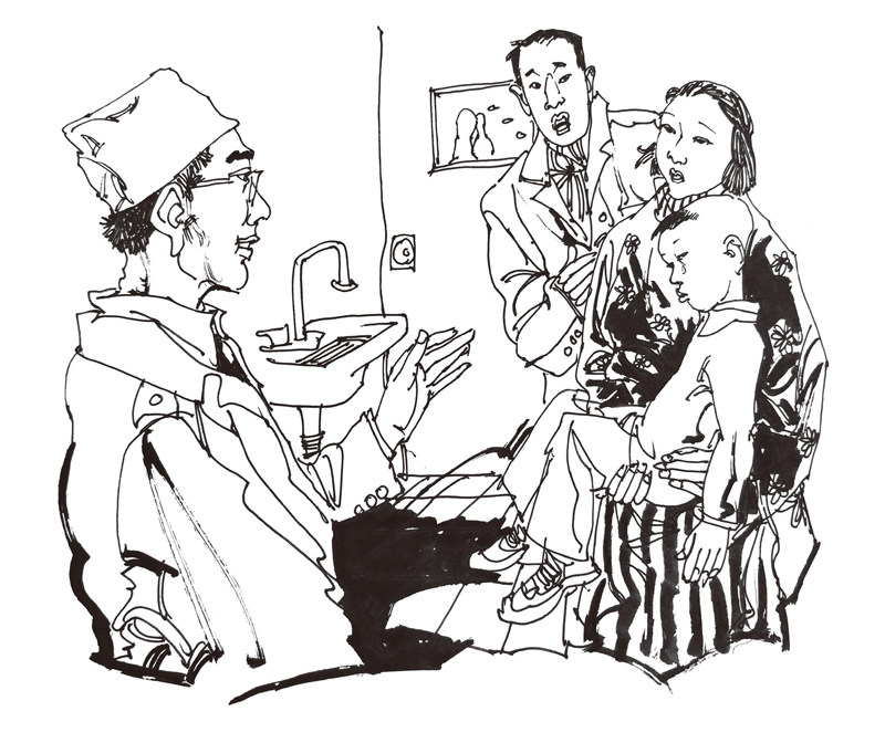 紧病慢先生。 这句话用儿话音发出来,好听,有韵味,特别是用袁店河的方言,更有意味儿:紧病儿慢先儿生。先生是指中医。好像是说病人状况十分危急了,医生依然不慌不忙——肖纾聃后来才悟出这句话的道道儿。 后来是指他成为袁店河上下的名医后。他在自己的医案里特意称道了这句话:好中医是急不得的。 肖纾聃就不急。他坐门诊是袁店街头一景。端坐,双脚着地,合闭双眼,目光方向为关元穴,肚脐下三寸,静默,意守半分钟