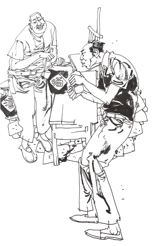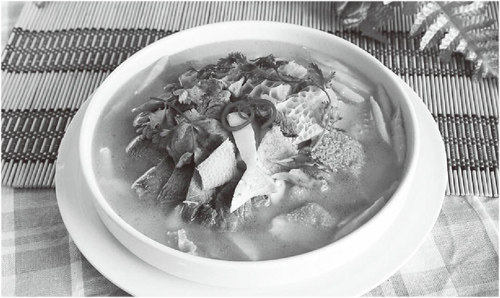 牛杂汤。腩儿、肠儿、肚儿、肺儿、肝儿、腰儿、大块萝卜,杂在一锅卤煮,好吃。配火烧,汤汤水水,热热乎乎,好喝不贵。 袁店镇上不止一家牛杂店。开着的,关着的,张家的,李家的,都没有南街牛七家的好。 牛七,行七,在袁店镇南街开牛杂店。 牛七家的牛杂,原料和其他家一样:牛骨头熬汤,牛舌头、牛脆骨一并炖煮。不一样的是:牛心、牛肺爽脆;牛肚、牛肠软嫩;牛筋、百叶筋道;牛腩能吃出纹路感。 人们喜欢喝牛七