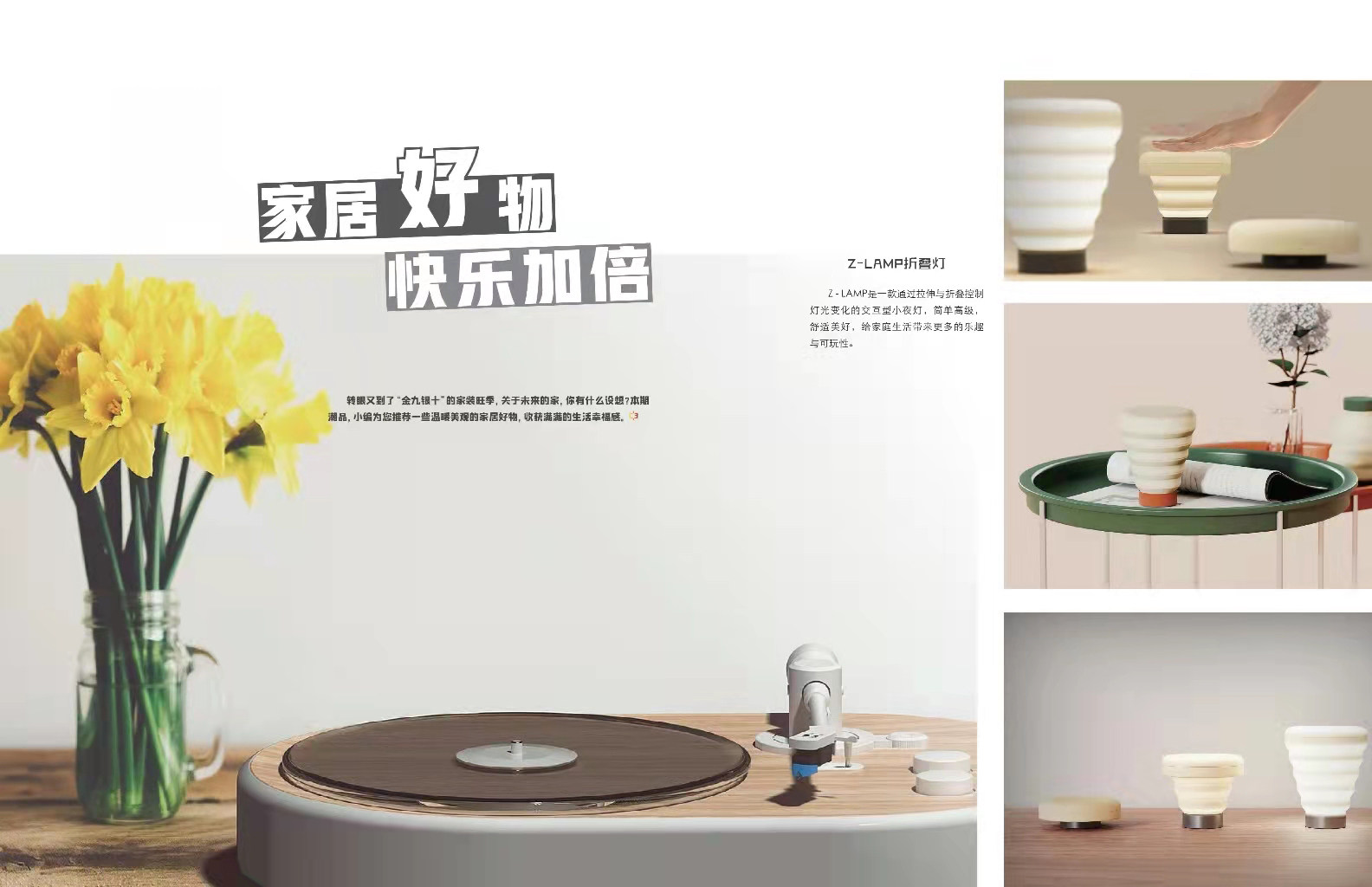 转眼又到了“金九银十”的家装旺季,关于未来的家,你有什么设想?本期潮品,小编为您推荐一些温暖美观的家居好物,收获满满的生活幸福感。 Z-LAMP折叠灯 Z - LAMP是一款通过拉伸与折叠控制灯光变化的交互型小夜灯,简单高级,舒适美好,给家庭生活带来更多的乐趣与可玩性。 HENGPRO 衡灯 HENGPRO简洁而又禅意的灯框内,两个小球互相吸引构成“衡”,便可点亮,增添生活乐趣,照亮居家生