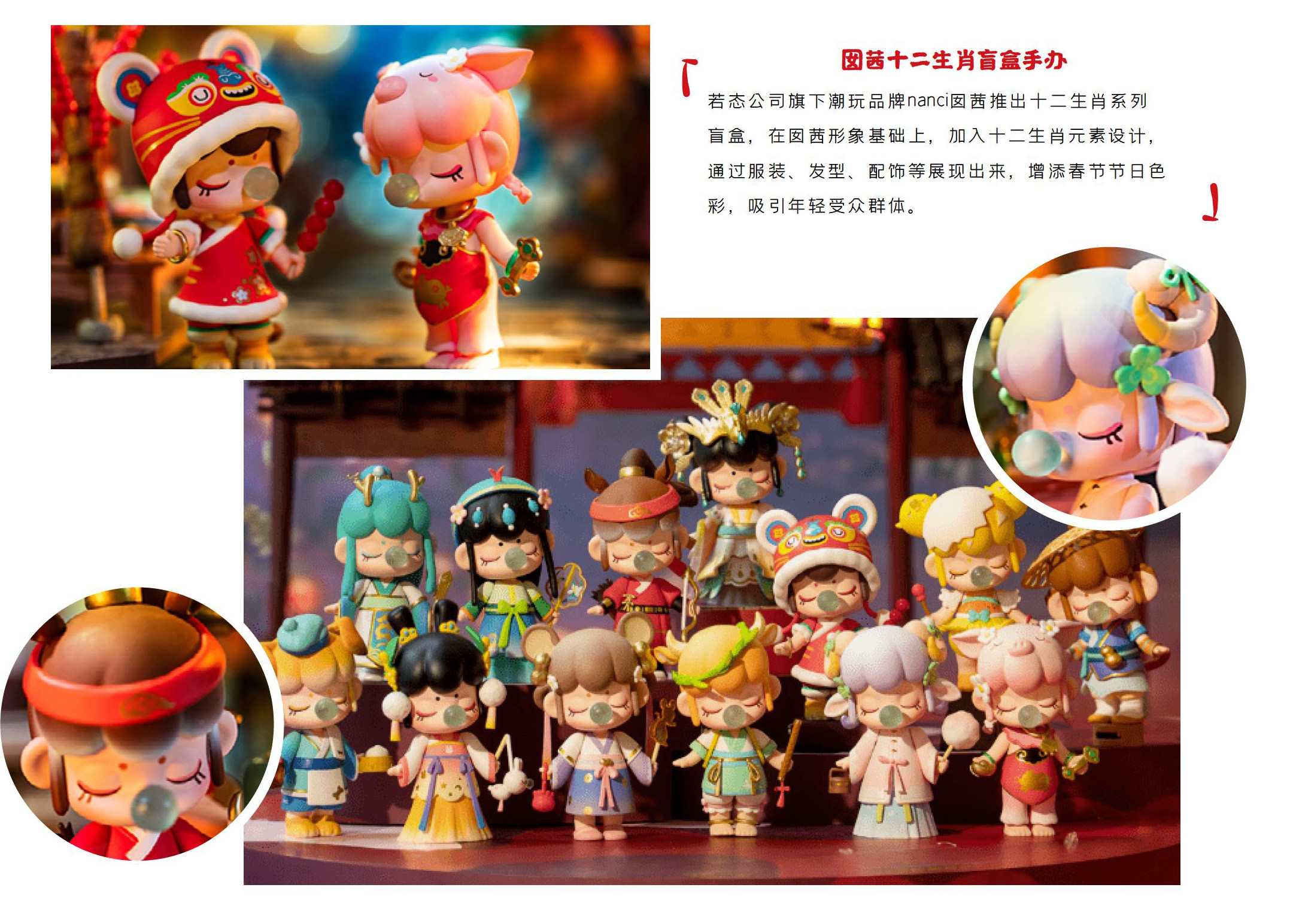 若态公司旗下潮玩品牌nanci囡茜推出十二生肖系列盲盒,在囡茜形象基础上,加入十二生肖元素设计,通过服装、发型、配饰等展现出来,增添春节节日色彩,吸引年轻受众群体。