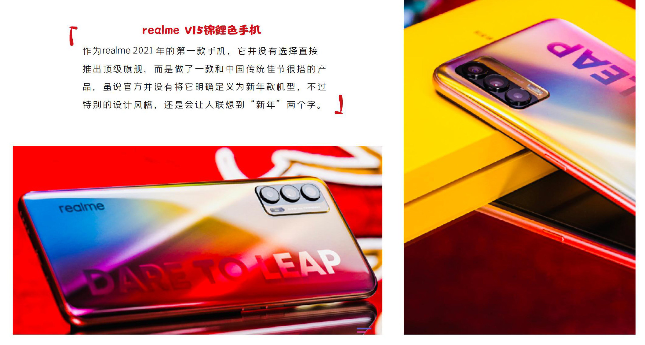 作为realme 2021 年的第一款手机,它并没有选择直接推出顶级旗舰,而是做了一款和中国传统佳节很搭的产品,虽说官方并没有将它明确定义为新年款机型,不过特别的设计风格,还是会让人联想到“新年”两个字。