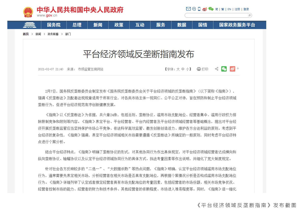 2021年2月7日,国家市场监督管理总局官网发布了《国务院反垄断委员会关于平台经济领域的反垄断指南》,进一步明确平台经济领域反垄断执法原则,有针对性地细化分析思路,为平台经济领域经营者依法合规经营提供更加明确的指引,促进平台经济规范有序创新健康发展。 我们期望反垄断能够为包括平台在内的创新者,打开新的视野,新的赛道,新的市场机会。因为这是平台经济进化的开始。 反垄断的政策,又出台了。 2月7