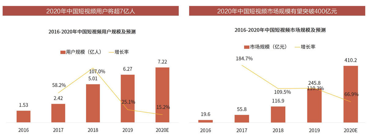 从年轻人的新潮娱乐方式,发展到如今用户数几乎达到中国总人口的一半,短视频平台企业展示出了惊人的增长速度。伴随平台模式走向成熟,行业格局初定,品牌商业化与消费者需求偏好也逐渐清晰。 中国短视频用户超7亿 保持高增速 随着4G普及和5G技术的发展,中国短视频行业覆盖的用户规模不断扩大,2020年仍有15.2%的同比增长,预计可达到7.22亿人。短视频正在成为新的社交渠道,社交属性逐渐显现。 中国