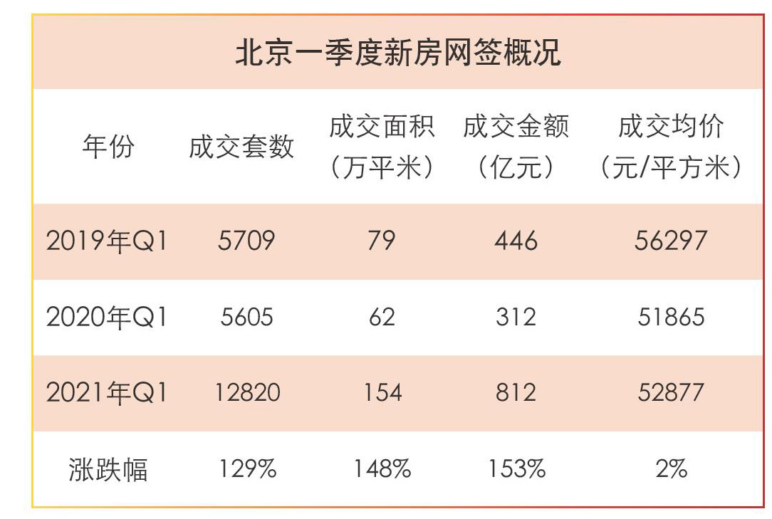 2021年一季度,在“就地过年”、片区学区房等多因素共同推动影响下,北京楼市迎来了“小阳春” 成交量:创五年新高 一季度北京商品住宅(不含保障房)累计成交233.01万平方米,创近五年同期新高。 企业:销售表现亮眼 一季度北京房企销售表现亮眼,其中,首开股份继续稳居榜首位置,中海地产位居榜单次席。 各区:量价齐升 从成交规模角度,一季度海淀、朝阳成交规模表现突出,一季度近郊六区整体成交