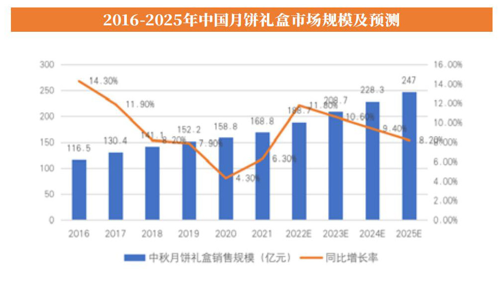 在“颜值经济”盛行的背景之下,什么样的月饼礼盒更容易撬动消费者的购物欲望?看看今年消费者怎么选 数据来源|艾媒数据中心、国家统计局 消费者饮食升级推动行业增长 数据显示,2016-2021年,中国月饼礼盒市场规模呈上升趋势,预计2022年中国月饼礼盒销售额达到188.7亿元,同比增长11.8%。随着消费者饮食升级,对月饼的口味需求多元化,以及节日送礼需求激增,预计2025年月饼礼盒市场规模达