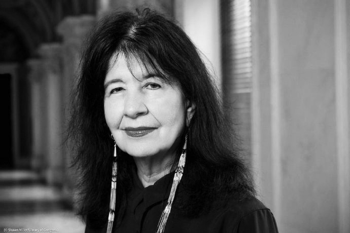 乔伊·哈卓(Joy Harjo)诗人、作家、音乐家。1951年她出生在俄克拉荷马州的塔尔萨,是马思科吉(克里克)族的一员。父亲是克里克人,母亲有切诺基人、法国人和爱尔兰人血统,1976年她毕业于新墨西哥大学诗歌创作专业,获得学士学位,1978年在爱荷华作家工作室获得艺术硕士学位。现已出版12部诗歌、散文著作,5张原创音乐专辑。2019年6月她被任命为第23届美国桂冠诗人,是有史以来第一个印第安人获