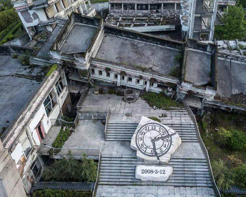 四川省汶川县映秀镇漩口中学地震遗址。在教学楼台阶上的纪念时钟定格在了1 4 时2 8 分,那是2008年5月12日汶川大地震发生的那一刻。 唐山地震博物馆中展出的大量历史照片、实物和复原场景,体现了抗震救灾的有效举措。 笔者在四川汶川地区作调查的时候,问过很多地震灾民是否在日常生活中有预防地震的意识,答案几乎都是否定的。是否这个地区很少发生地震呢?我们翻开地方志和历史资料,可知茂县、汶川一带发