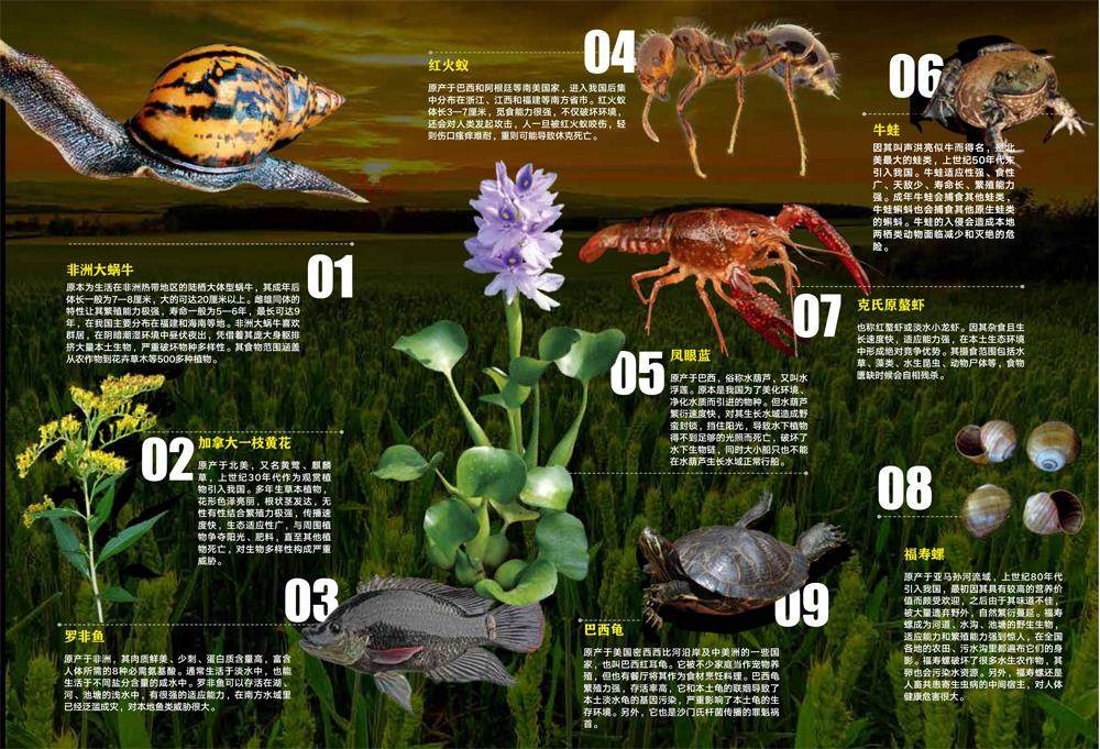 生态系统是经过长期进化形成的,各物种之间形成了现在相互依赖又相互制约的密切关系。当一个外来物种被引入后,有可能打破平衡,改变或破坏当地的生态环境,同时也破坏生物多样性。截至2020年6月,我国已经发现660多种外来入侵物种,其中71种被列入《中国外来入侵物种名单》。今天,我们一起来看一看那些你并不陌生的“外来入侵者”。 什么是外来入侵物种 在当地的自然或半自然生态系统中形成了自我再生能力,可能