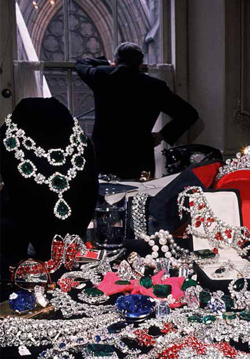 1960年,纽约,海瑞·温斯顿看着窗外的圣帕特里克大教堂。他正准备搬迁店面,前景黑色天鹅绒上展示的珠宝价值超过1000万美元,包括价值27.5万美元的祖母绿和钻石项链、价值22.5万美元的红宝石项链等。 “钻石恒久远,一颗永流传”。对于很多人来说,钻石不是一颗冰冷的宝石,而是忠贞、永恒的象征;在古希腊人眼中,每一颗钻石都是神流下的眼泪。有着“钻石之王”之称的海瑞·温斯顿先生,也有着和钻石一般闪耀