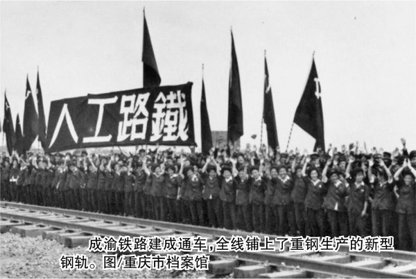 烘钢炉的闸门打开了,工人们紧张地从一片火海中拖出500公斤重的钢坯,借着活动地辊的推送,轧钢机敏捷地捉住钢坯,送入档口,钢坯冒着火焰直射过去,接着又从第二个眼口中钻了回来。 当钢坯从最后的眼口中吐出来的时候,已是十多米长呈T形的火红钢轨了。热锯机呼呼作响,火星直冒地把它两头切平,再送入冷却场中,现出了青黑的钢铁本色。 “第一根钢轨做出来了!”现场响起兴奋的欢呼声。 这是1950年5月10日,