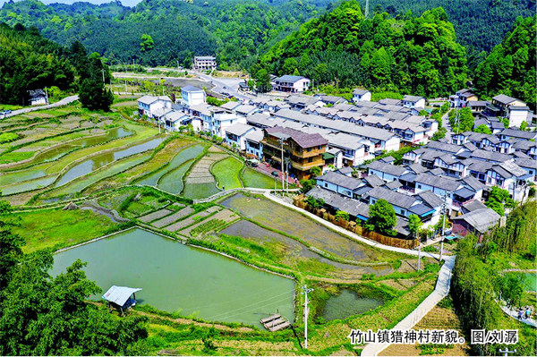 清晨的梁平区竹山镇猎神村,巍巍青山四面环绕,百里竹海云蒸霞蔚,一栋栋别致的小竹楼点缀其间,宛如一幅水墨画卷。 猎神村位于竹山镇明月山百里竹海风景区腹地,最高海拔达1080米。靠山吃山的猎神村人,以竹子为原料进行土法造纸的历史已有上千年。 村民李治权回忆,20世纪80年代,全村几乎家家造纸谋生,尽管那时大家的日子过得滋润,但浸泡竹子的石灰水流到龙溪河,最终进入长江,造成了严重污染。 由于土法造