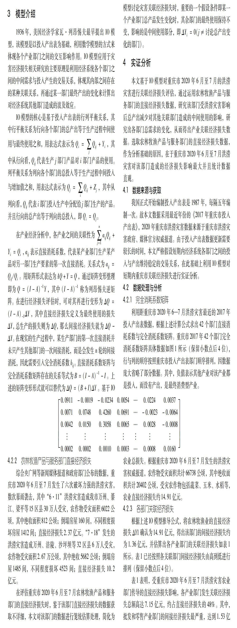 基于IO模型的洪涝灾害关联经济损失评估