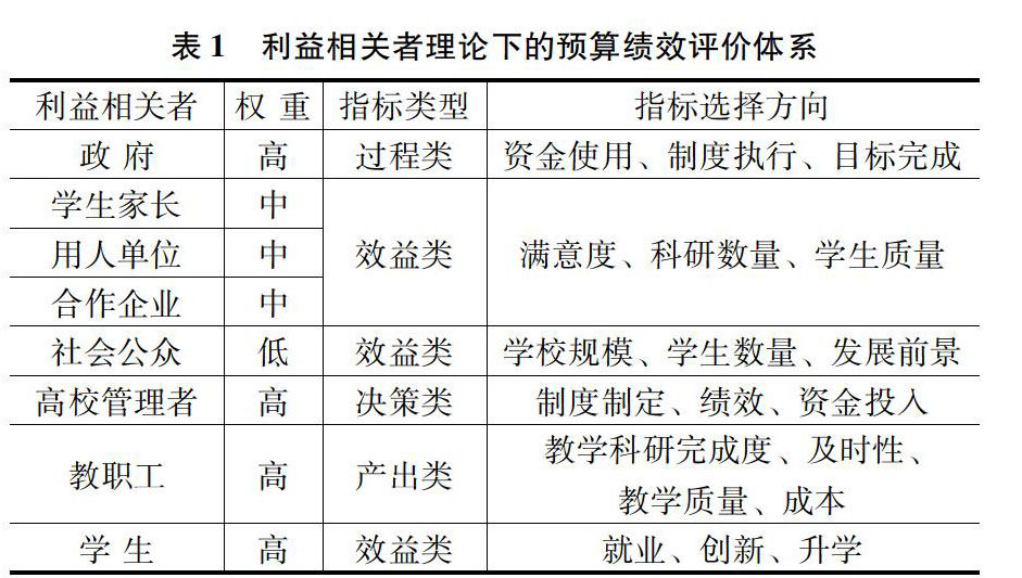 利益相关者理论在高校预算绩效评价中的应用研究