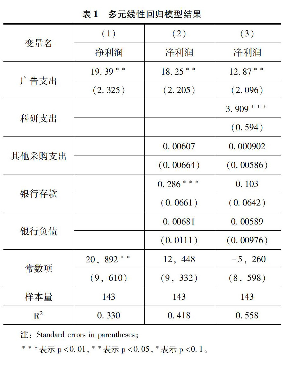 [摘 要]文章研究了跨国公司支出结构中广告支出和科研支出两类支出对公司利润的影响。使用计量经济分析中常用的多元线性回归模型,基于中国 143 家跨国公司的微观数据进行实证分析。结果表明,至少从短期来看,广告支出和科研支出对跨国公司利润都有积极的影响;其中广告支出的影响力度更大,对跨国公司利润增长的促进作用也更为显著。 [关键词]跨国公司;广告支出;公司利润;多元线性回归 [DOI]10.139