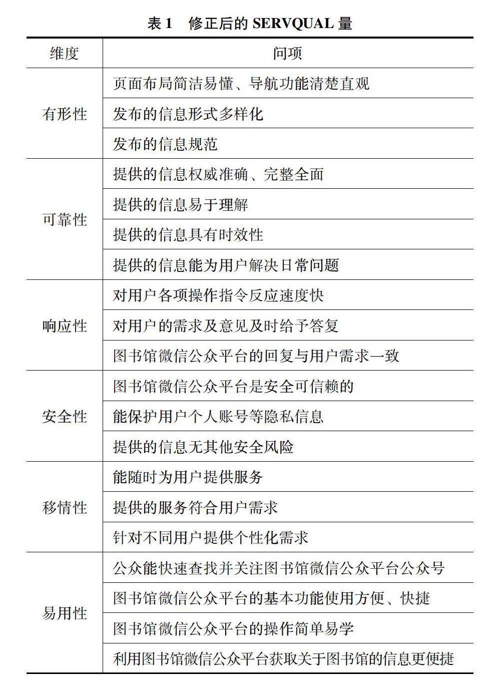 [摘 要]随着信息技术和互联网技术的迅速发展,高校图书馆将微信平台作为服务门户成大势所趋。目前学者将目光主要集中于高校图书馆微信公众平台现状上,部分学者对图书馆微信平台的服务质量进行了研究,但对于如何评价图书馆微信平台服务质量仍未有一个标准。文章在相关研究基础上,应用SERVQUAL模型并进行修正,并以H大学图书馆微信公众平台为对象,通过研究与分析,找到H大学图书馆微信公众平台存在与用户缺乏互动性