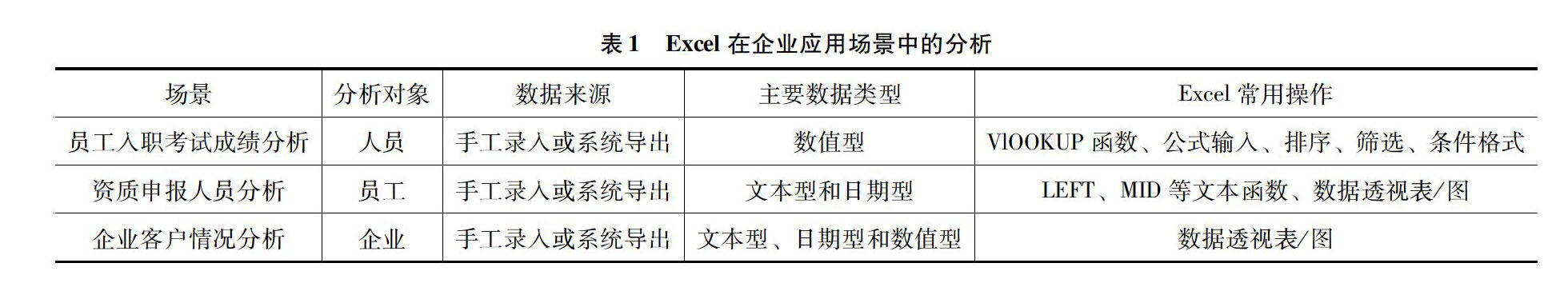 [摘 要]目前,Excel在企业中的应用相当广泛。无论在职能部门还是业务部门,Excel都被视为一款功能强大的数据分析工具。文章选取了Excel在企业应用中的三个典型场景,包括新员工入职考试成绩分析、资质申报人员数据分析和企业客户分析。通过三个场景的比较分析,文章介绍了Excel在不同场景中的实际运用情况,为员工更好使用Excel对企业数据进行分析提供思路和借鉴,也为日后对员工进行办公技能的培训提