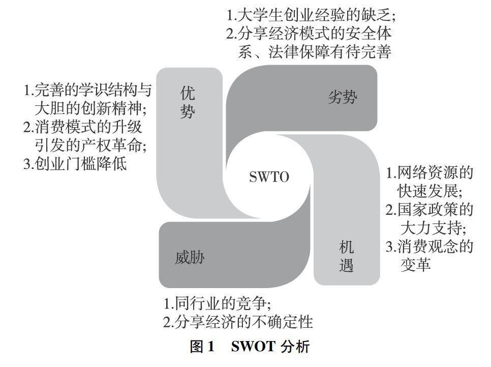 [摘 要]在“大众创业、万众创新”的政策指导下,大学生自主创业成为高校就业的新方式。伴随我国经济发展进入新常态,供给侧结构性改革综合效应逐步显现,分享经济为大学生自主创业提供了可行性条件。文章基于SWOT分析法,全面审视分享经济模式下大学生创业的优势、劣势、机会和危险四个要素,选择“发挥内部优势+利用外部机会”的战略模式为研究对象,提出适合大学生创业的知识技术型、低成本微创型、特殊行业型三个创业方
