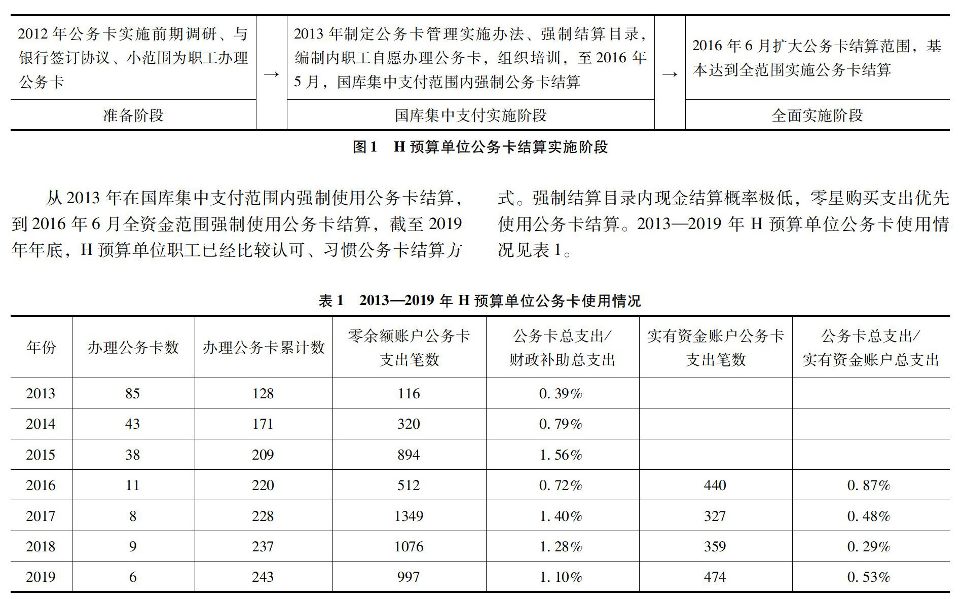 [摘 要]全面推行公务卡结算制度已实行了八年的时间,实施范围从最初的国库集中支付体系扩展到其他来源的财政性资金。文章以预算单位推行公务卡制度为出发点,分析此制度的意义、不足并提出相应的建议,并介绍了H预算单位公务卡实施的过程及取得的成绩,为预算单位顺利推行公务卡制度提供借鉴。 [关键词]预算单位;公务卡;结算 [DOI]10.13939/j.cnki.zgsc.2021.07.150 1 公