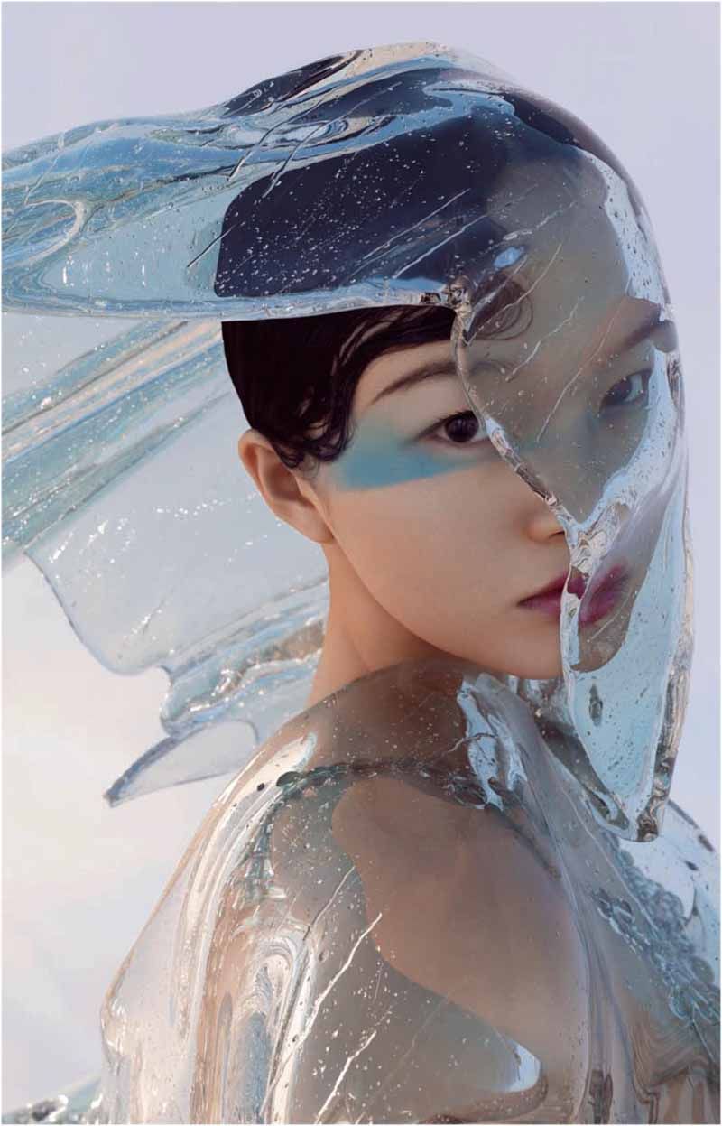 水 “我想象中未来的时装。像梦境一样具有抽象的现实感。未来的世界,每个人的灵魂都是自由的,可以飘入不同的躯壳,可以变成海洋或飞虫,在自然界中体验和表达。服装作为表达自我的一种语言,也越来越自由,可能是风环抱海浪的结构,可能是灵魂成为动物后随意的彩虹色。”——Susan Fang 火 “未来的时装和世界有千百种可能,我们可以选择某一个自己喜欢的按钮进入一个新的程序,在这个程序里