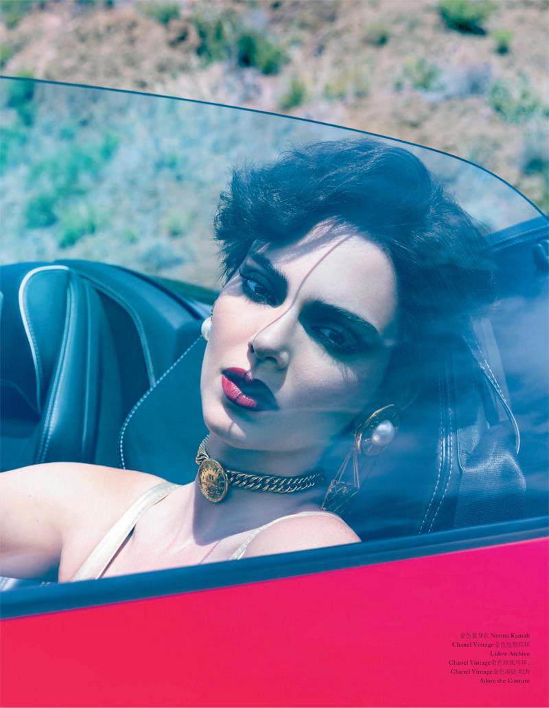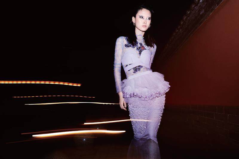 紫色刺绣上衣Louis Shentao Chen 紫色皮质抹胸、刺绣纱裙均为Givenchy 金属耳环、白色高跟鞋均为Fendi 当城市褪去白日的浮华,夜的迷离随即渲染开来。闷热与焦躁仍在空气中浮游穿梭,然华灯初上,自由的灵魂正绽放出绚丽的光芒。 羽毛连衣裙、项链均为Chanel水晶镶嵌手套Gucci彩色虫胡蝶装饰高跟鞋Rene Caovilla 绿色针织上衣Givenchy白色