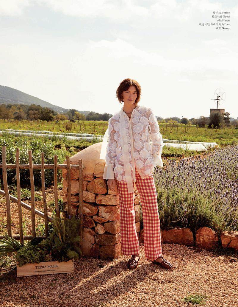 海滨风格的最高标准,或许就是体现豪华旅行、凸显玲珑曲线的两件套。 chael Kors Collection;短裤Max Mara;复古耳环Rellik 从黎明到黄昏,超模Karlie Kloss追随着太阳的脚步,在这个大胆而梦幻的炎炎夏日,释放满满的能量。 一条露身连衣裤,就能让天鹅绒变得性感撩人。连体裤、高跟鞋均为Saint Laurent by Anthony Vaccarello;金色
